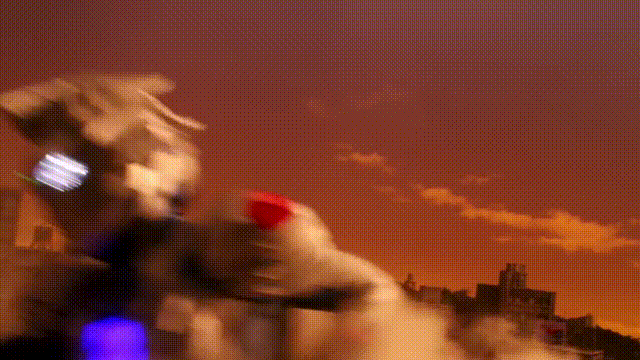 其中有这样的一串镜头:远处是奥特曼与怪兽正在进行地面搏斗,而近处则是几个路人反复穿梭在小巷,一边躲避飞沙走石,一边举手机拍照。