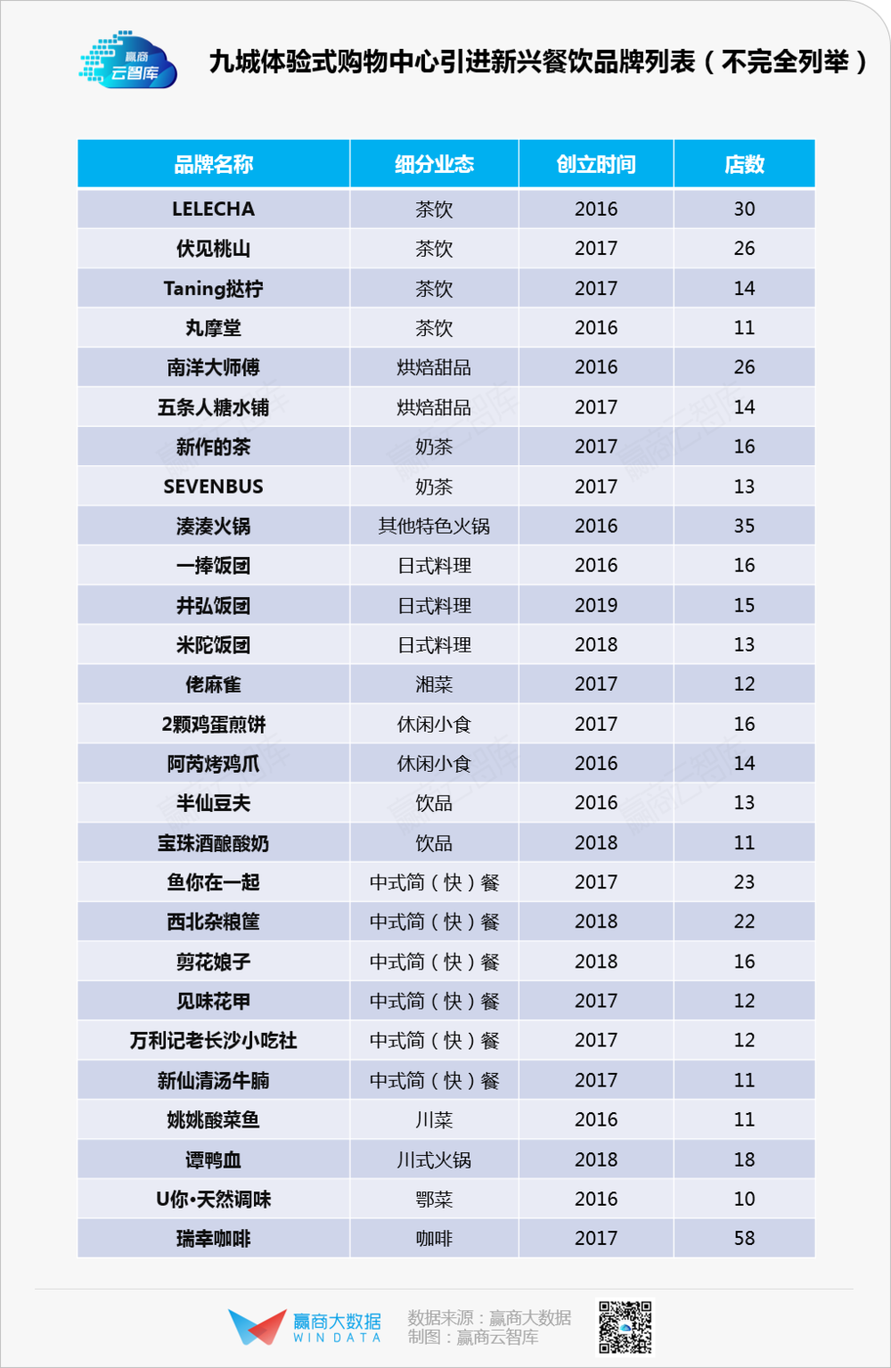 新兴品牌界定:2016年后创立/进入中国内地购物中心的品牌