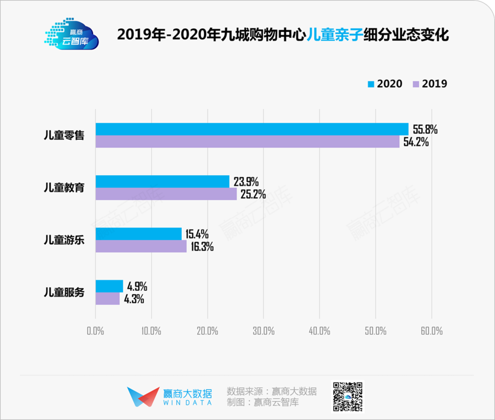 ■ 儿童亲子业态,儿童零售和儿童服务业态占比升高,而儿童教育和儿童游乐则出现下降。
