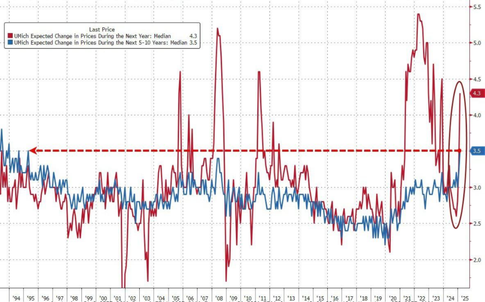 然而,周五公布的报告显示,根据密歇根大学2月份的最终数据,消费者预计未来五到十年物价将以每年3.5%的速度上涨,这是1995年以来的最高水平。与此同时,消费者信心低迷。
