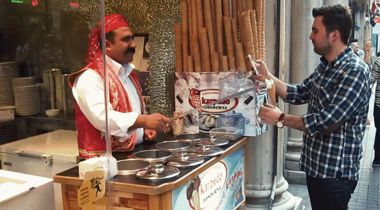 因为顾客和商家在购买过程中过于容易引起冲突,所以在互联网上也常常会有人问起:卖土耳其冰激凌是不是属于高危职业?