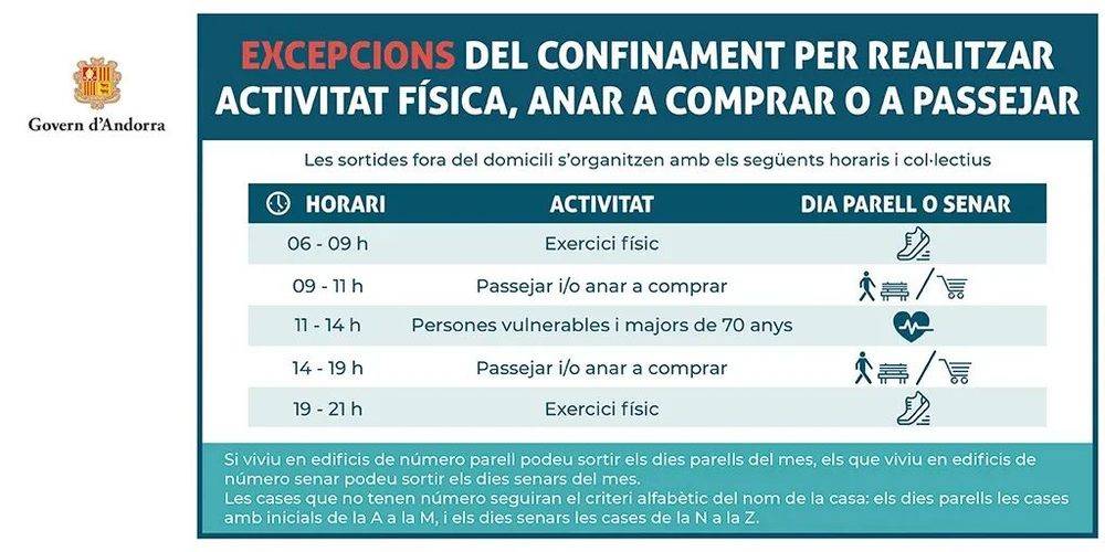 在封城时期,安道尔官方深知居家令不太有用,还给居民分流了户外活动时间,一早一晚是跑步和快走时间,中午是专属老人小孩晒太阳时间。