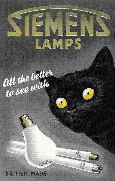 他们更好的一张广告海报设计于1953年,虽然简化了猫的形象,但却极巧妙地把灯泡和家联系到一起。