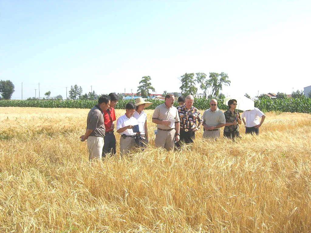 秀才(左二)和当时的同事们去考察大麦。图源:孙秀才