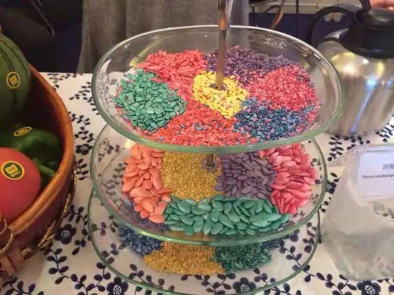 这些颜色鲜艳的包衣种子,就是在种子外层包上杀虫、杀菌剂和颜色,用化学方法预防病虫害。所以有机农业中不允许使用这样的化学处理过的种子。图源:秀才的朋友