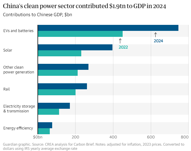 [2]https://www.theguardian.com/world/2025/feb/19/clean-energy-contributed-10-to-chinas-gdp-in-2024-analysis-shows