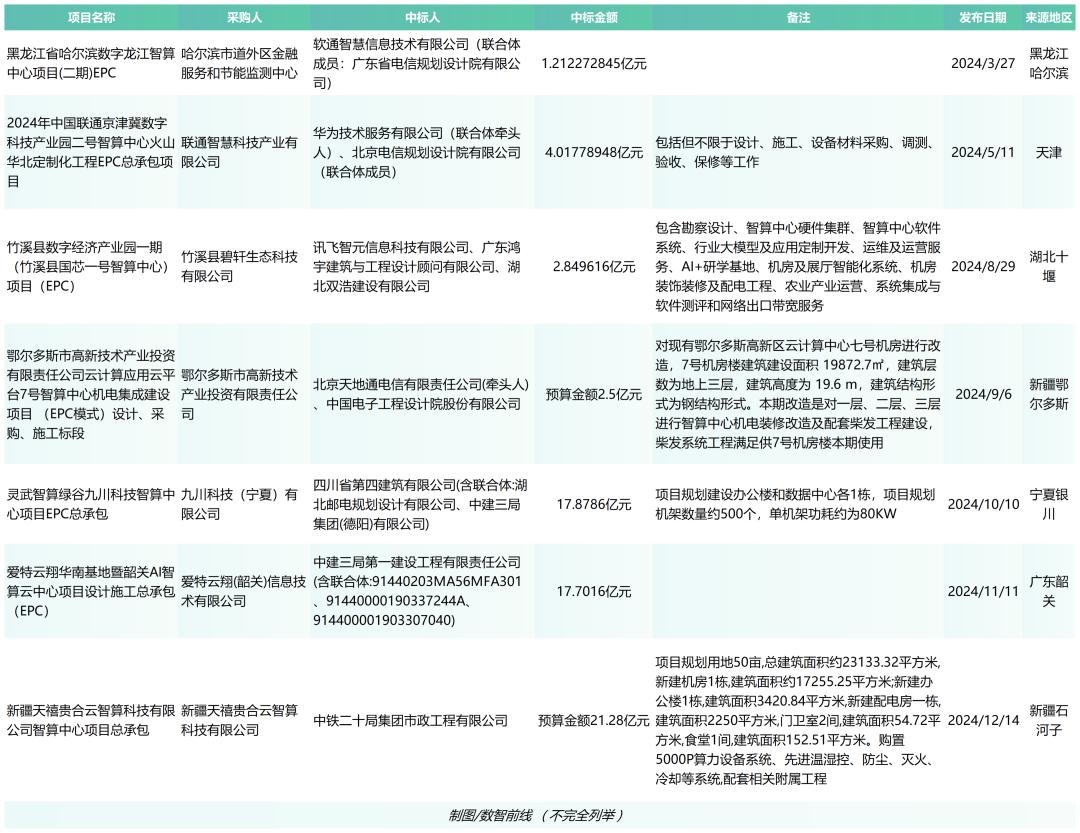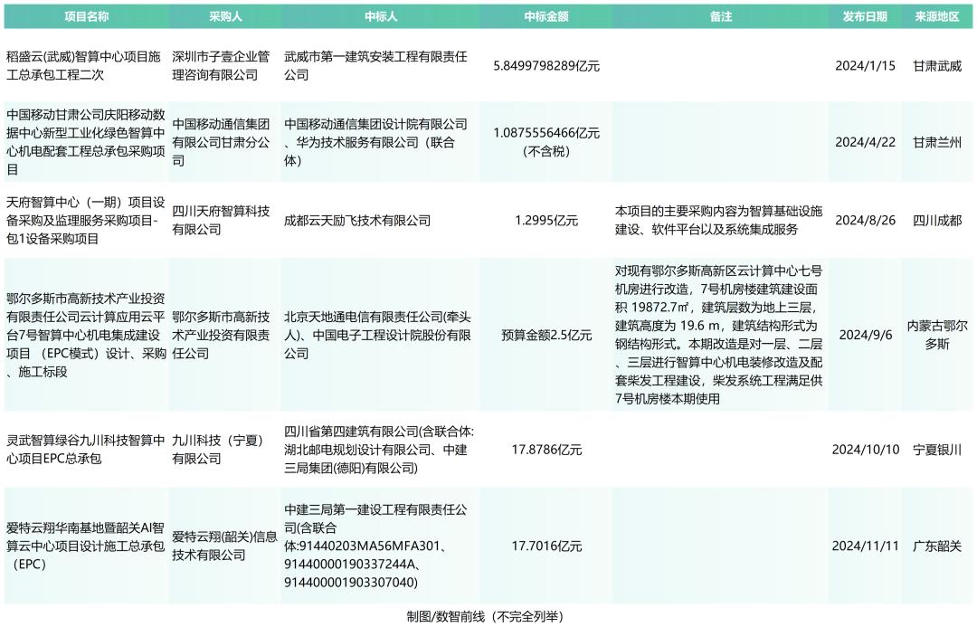 这些亿元级别的大单,很大一部分来源于对各种设备的采购,尤其是运营商的算力设备采购项目,如“中国移动2024年至2025年新型智算中心采购”项目,价值高达191亿元,是去年中标金额最高的一个智算中心相关项目。