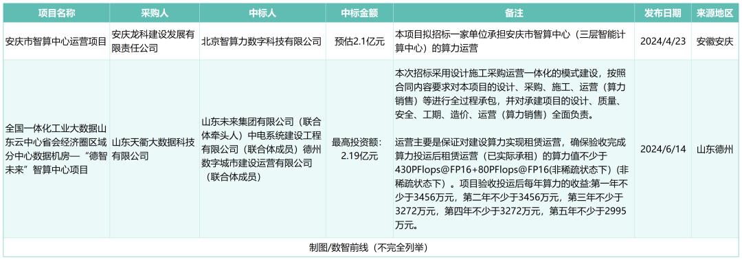 另外,一些算力运营项目,中标金额也达到了亿元级别。为了提高智算中心利用率,相关的运营服务的重要性在加强。