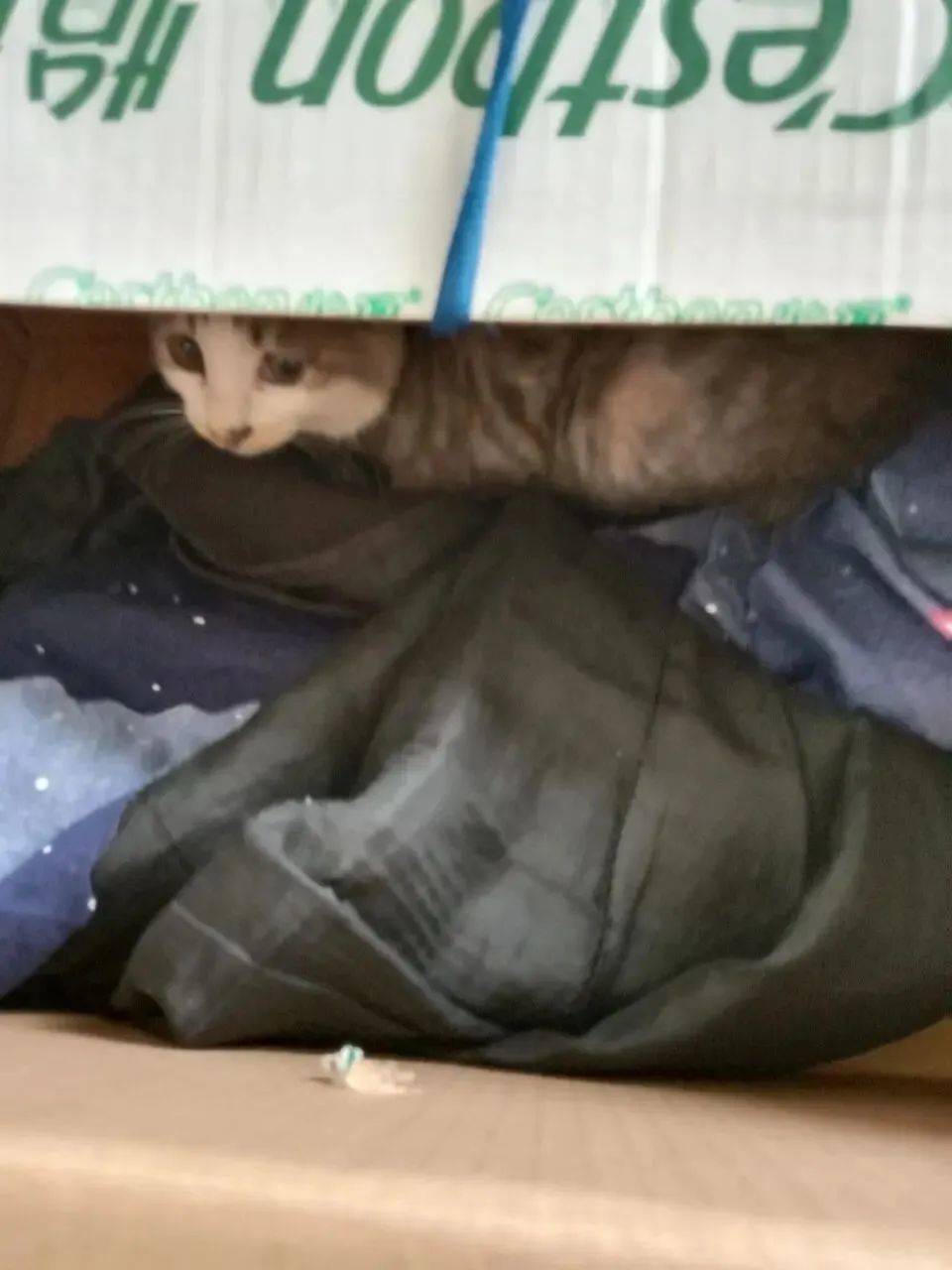2020 年冬天,也是墨茶最难受的时候,他曾经短暂的拥有过一只流浪猫,担心小猫没有断奶,他买了舒化奶喂猫,用破箱子和破衣服为小猫御寒,拍下了一张模糊的照片。
