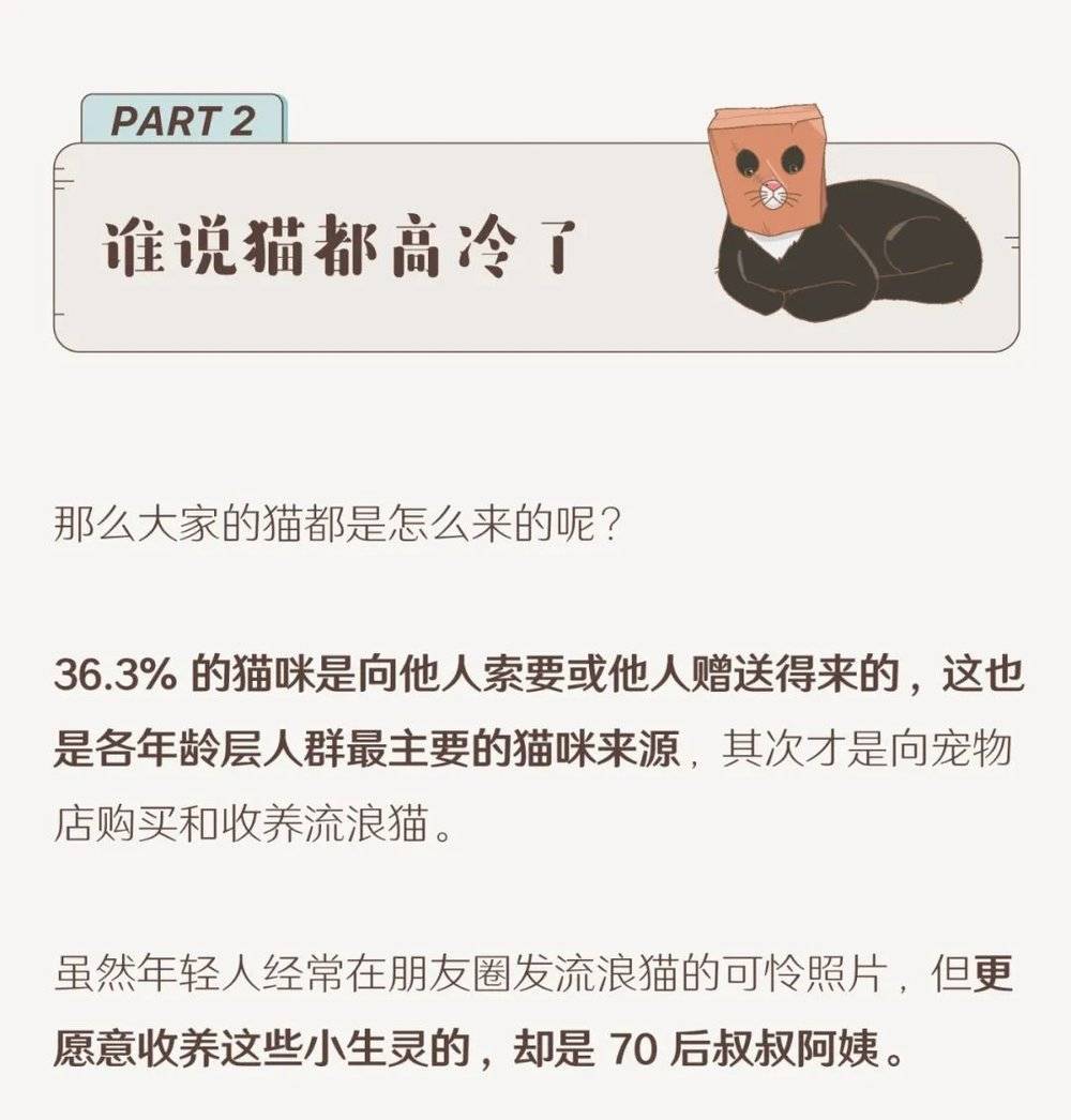 2. 收养流浪猫是宠物猫的第二大来源,但 70 后、80 后更愿意收养它们。