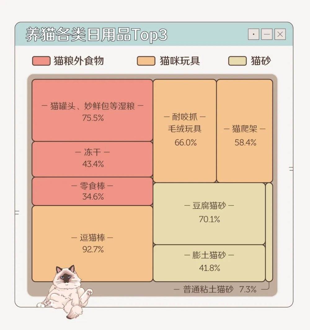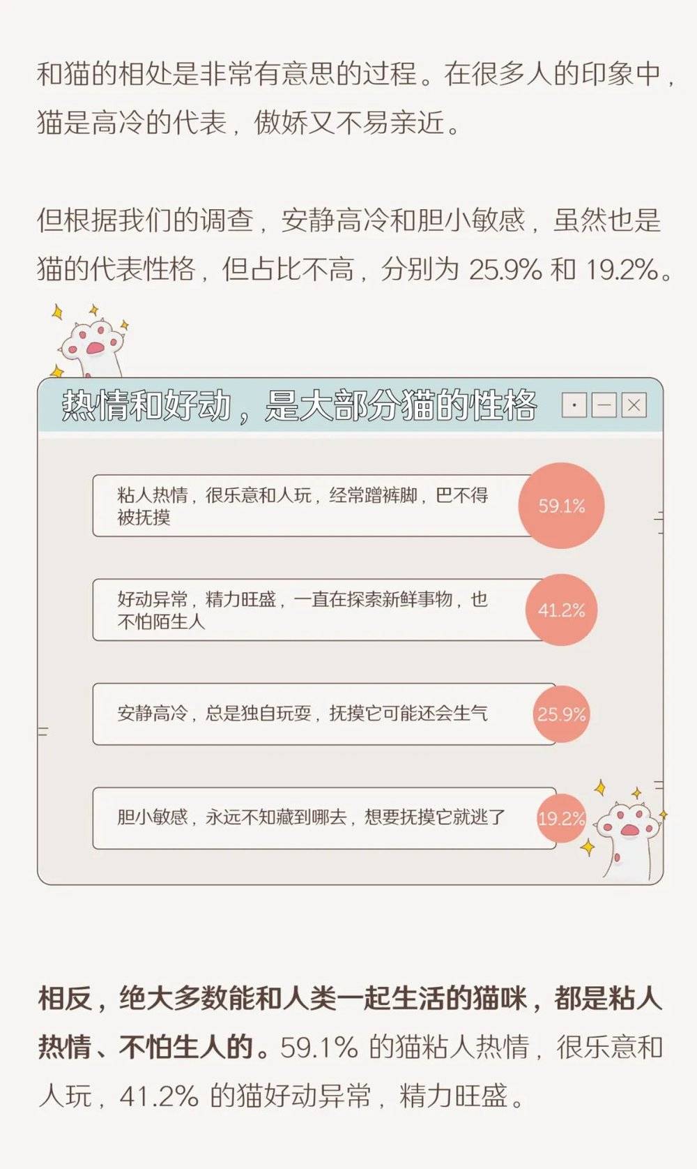 3. 将近六成的猫性格热情粘人,安静高冷的猫占比仅为 25.9%。