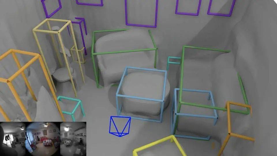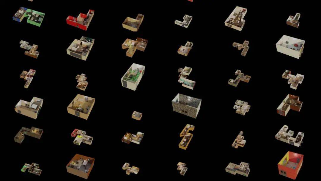 当眼镜能读懂并且记录环境时,再现一个虚拟的世界,就有了更大的可能。项目中的环境合成技术正是通过大量的数据收集整理,复刻了一个大规模、完全模拟的程序生成的室内场景数据集,也为“数字孪生”设立了新标准,加速了3D物体检测、场景重建和模拟到现实学习等挑战的研究。