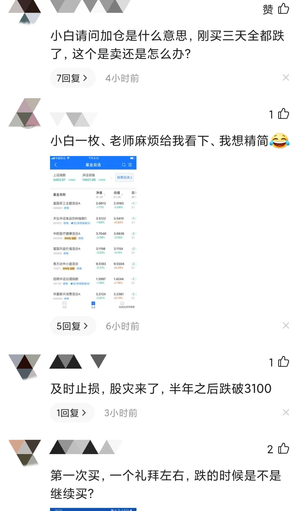 还有人买完基金后,在大V的评论区问:加仓是什么意思?