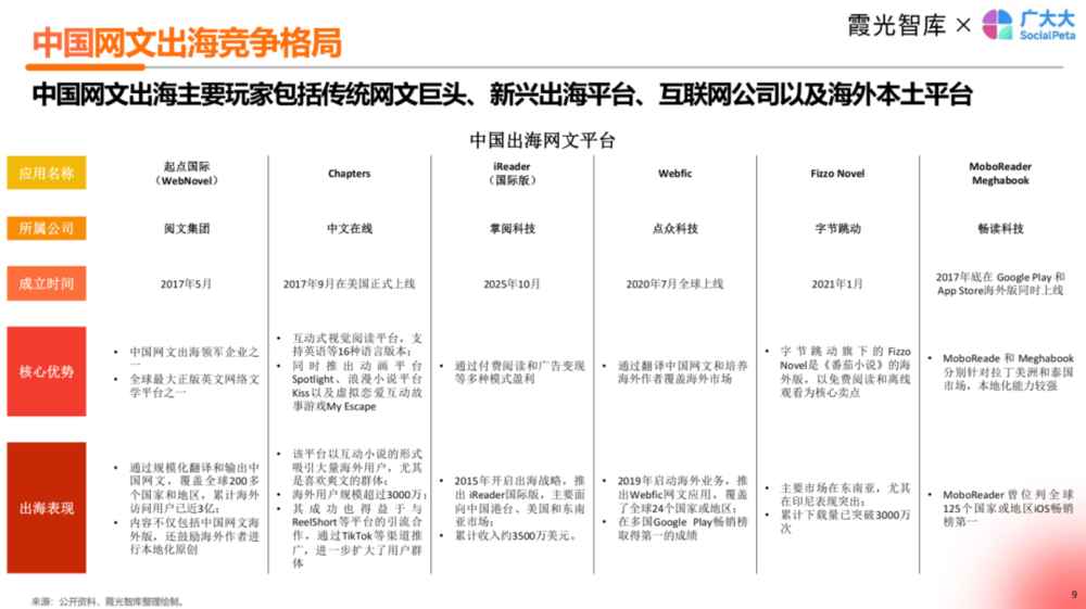 中国网文出海主要玩家包括传统网文巨头、新兴出海平台、互联网公司以及海外本土平台。
