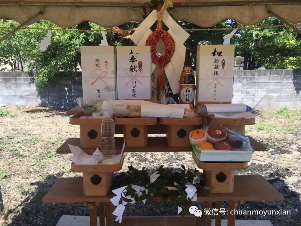 地镇祭是神道的仪式,要在建住宅前祈求土地神保佑施工的安全和顺利,保佑施主家族在这块土地上过得幸福。