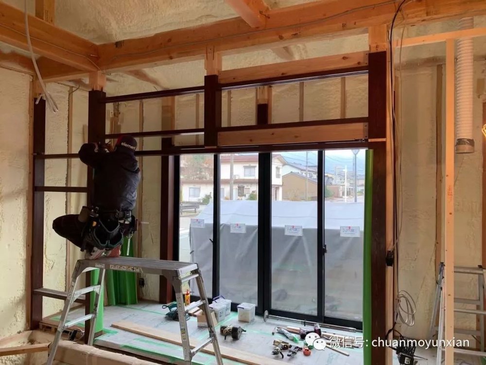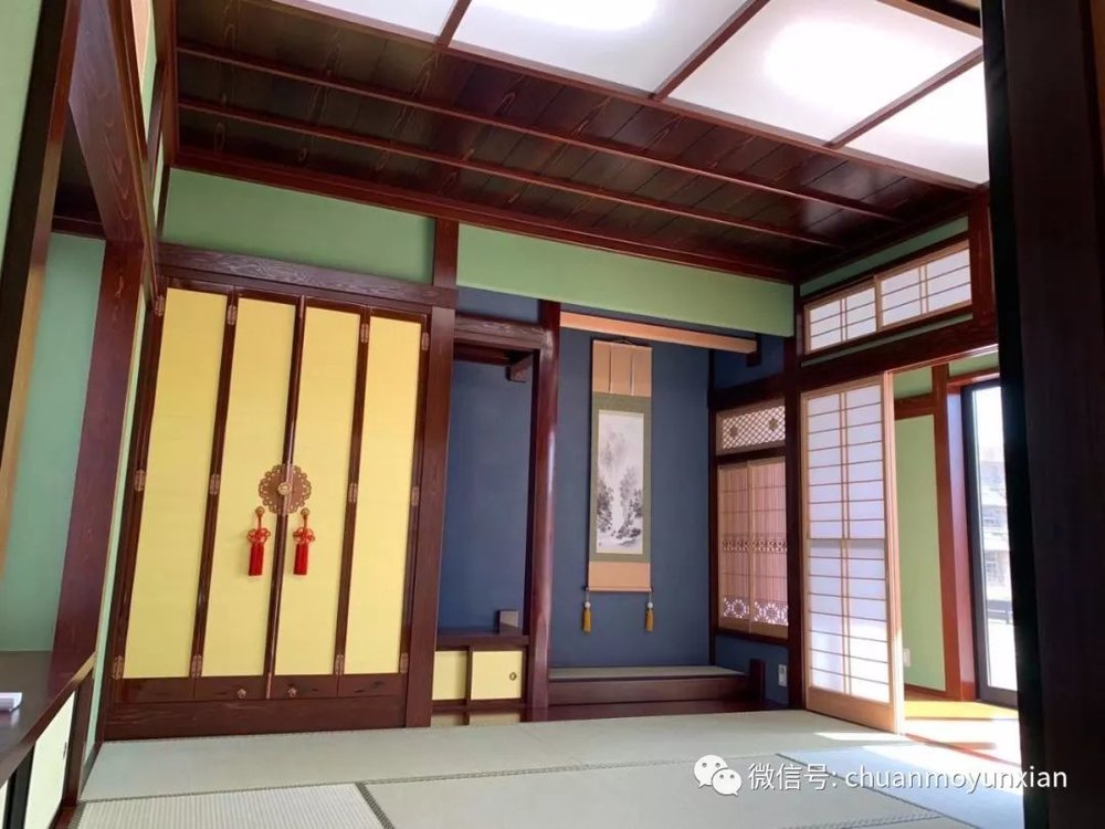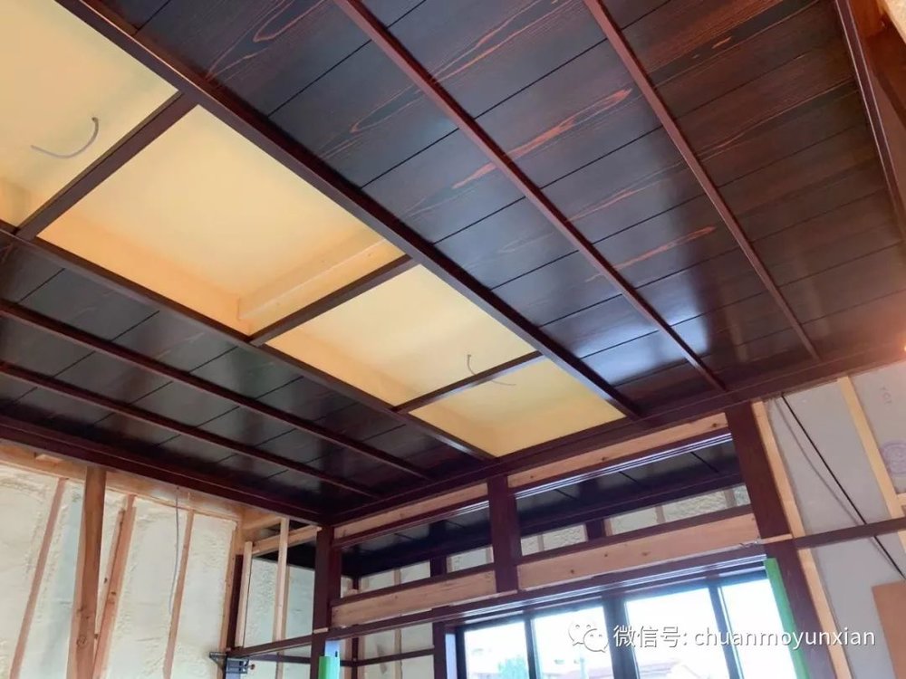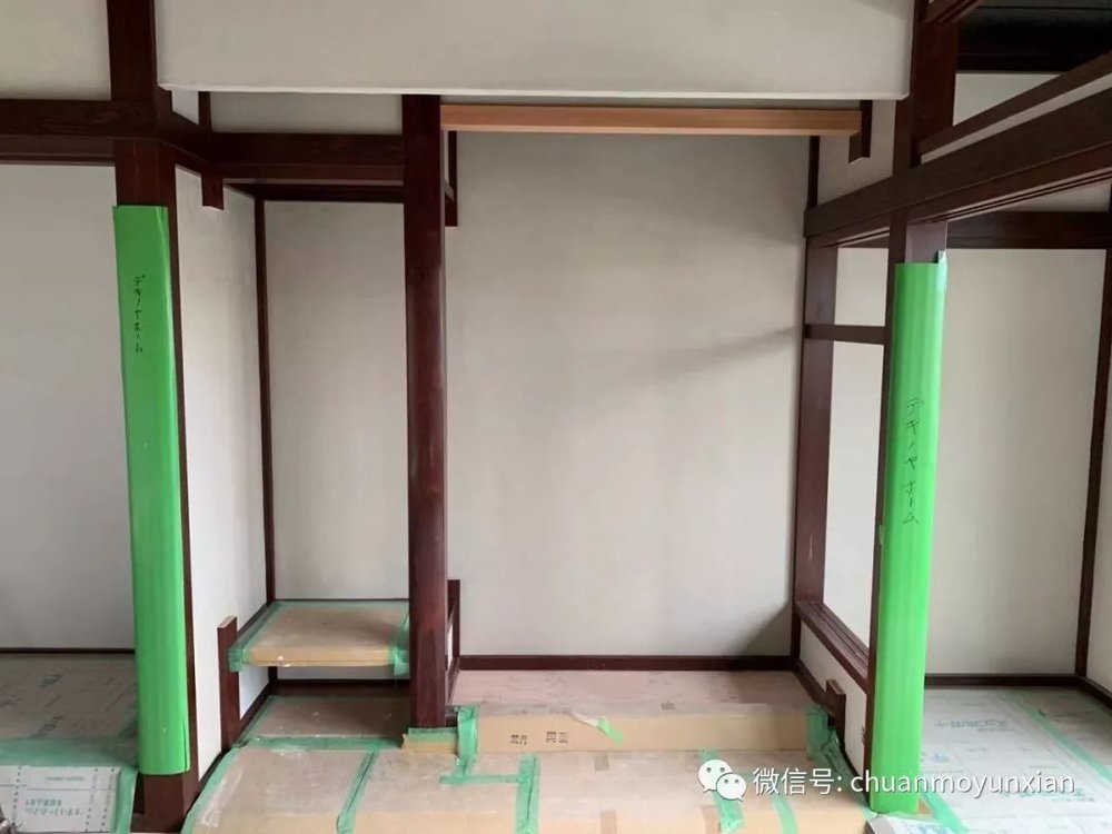 当日还安装了和室天花板、障子户门楣,之前和室柱子及天花板上了漆。