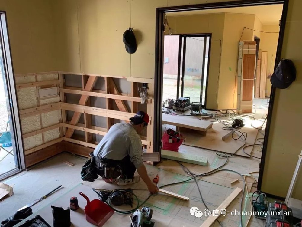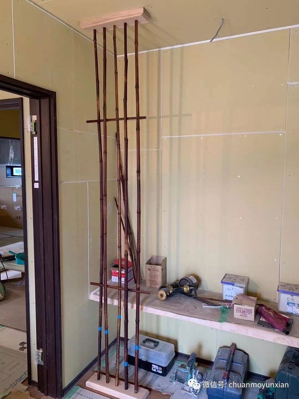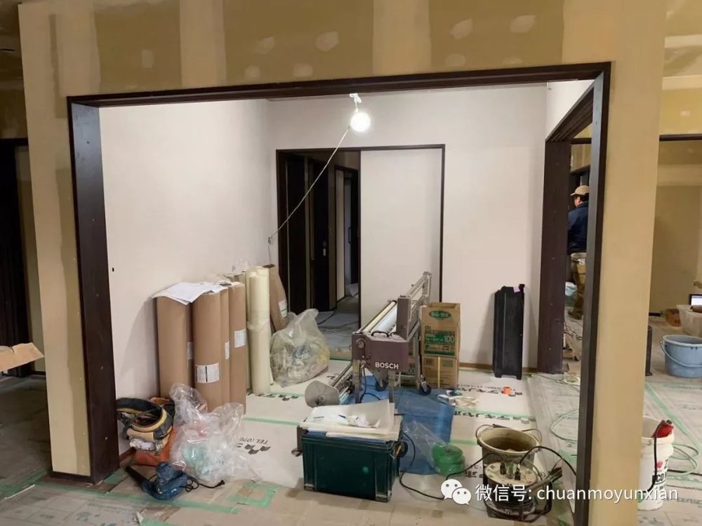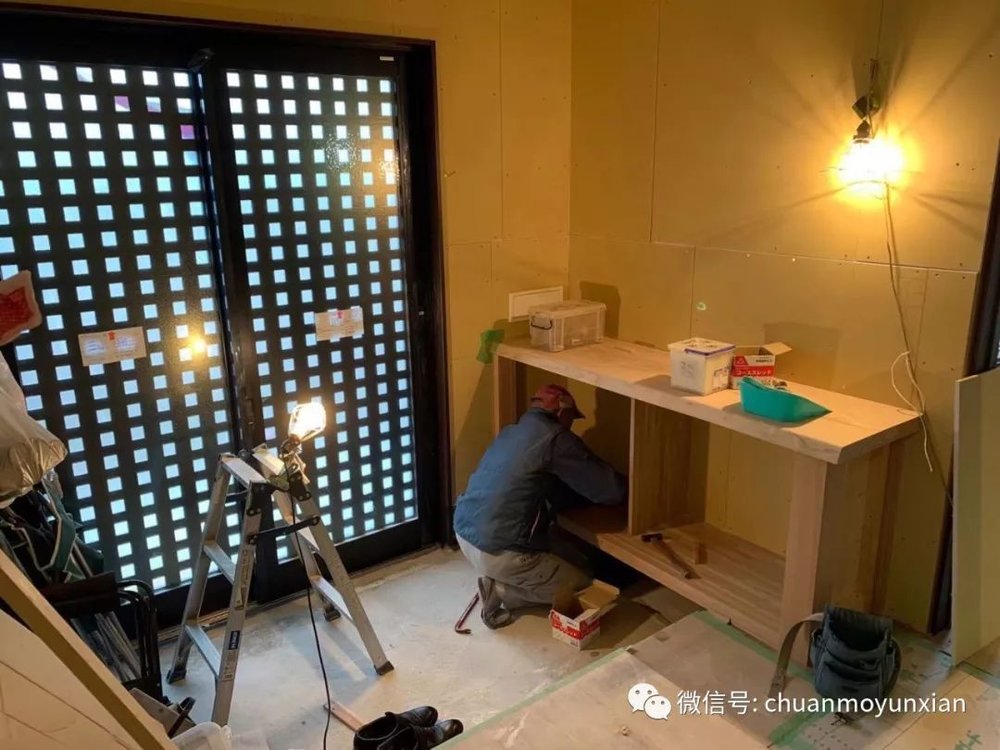当日还安装了和室天花板、障子户门楣,之前和室柱子及天花板上了漆。