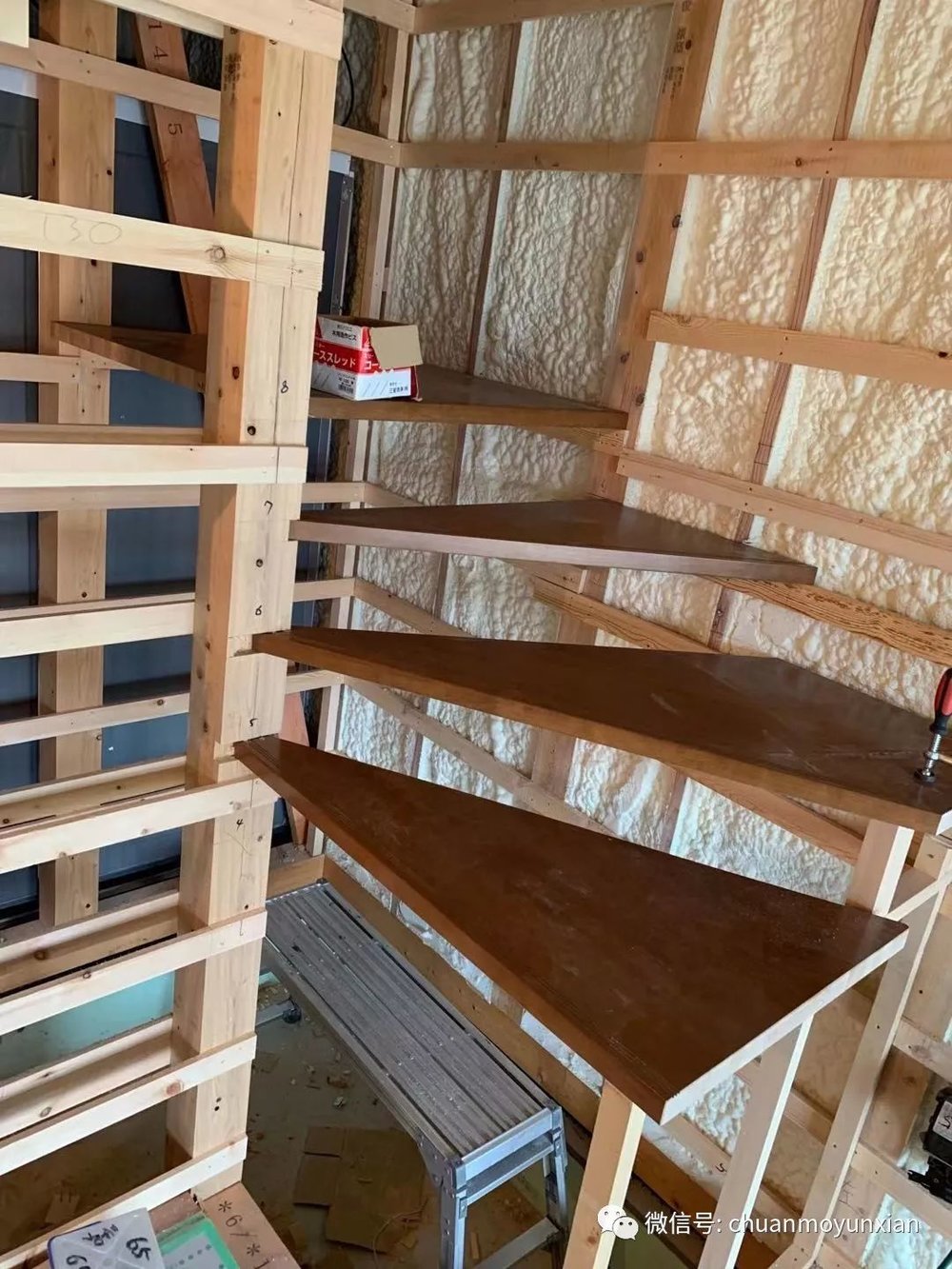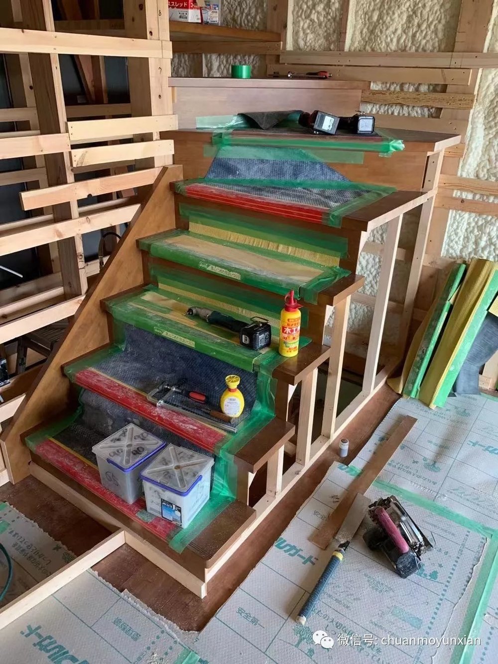 11月10日~13日安装楼梯。我以为从下面开始嵌楼梯木板,没想到是从中间开始的,然后嵌下面的,最后嵌上面的。