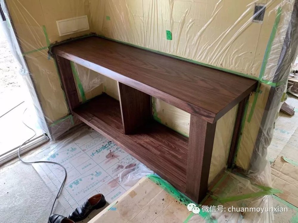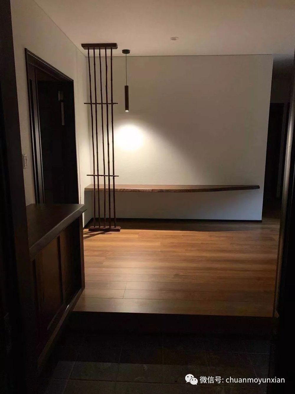 11月23日玄关完成。用橡木做鞋柜和台面,还有五根装饰用的竹子。