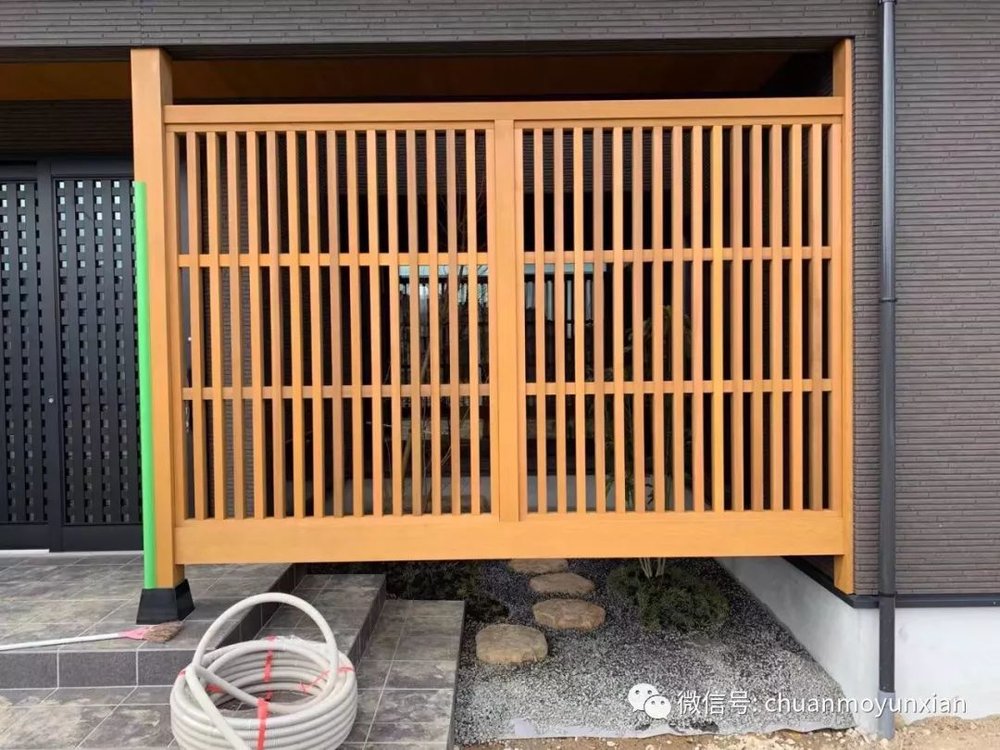 在坪庭靠外的一侧嵌了木隔栅,让外人不会一览无余地看到屋里。