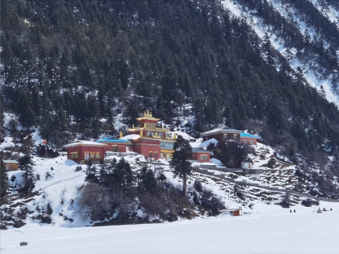 数小时前,她们还在爬升海拔约3700米的嘎隆拉雪山,道路两边被推开的积雪成为了一堵近2米高的厚重雪墙。陈玲被美景吸引,特意停车用手机拍下了远处红色的寺庙。接着,她们穿越3公里的嘎隆拉隧道,再一路以“之”字形下山,窗外的景色从雪山冰川不断过渡,最后进入海拔700米左右的山地雨林。