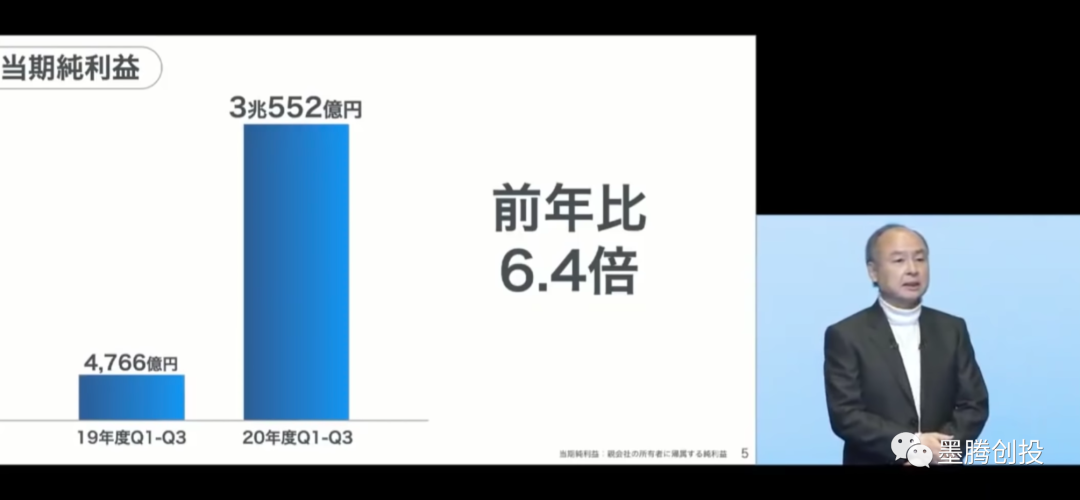 软银几天前的财报发布会相当亮眼——2020财年前三个记录净利润超过了3万亿日元(约合284亿美刀),同比增长了640%。其中,被质疑了一年多的愿景基金表现爆棚,也让孙正义相当开心。