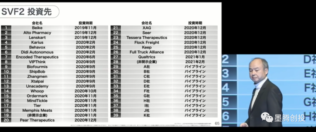 在最新的2020财年1~3季报告中,孙正义提到了软银两期愿景基金的投资组合。