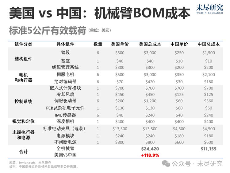 美国知名半导体及人工智能网站Semianalysis发布了一份关于机器人的长篇报告《美国正在错失新劳动力经济》,我们选译了其中关于美国机器人供应链的部分。