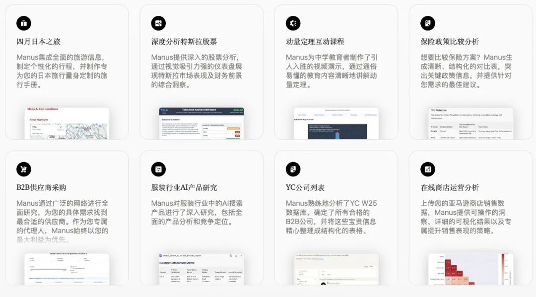 3月6日凌晨,华人团队Monica.im突然发布Manus,自称为“全球第一款通用agent产品”。和普通的聊天机器人(比如ChatGPT)只能提供文本对话的服务不同,Manus能够像一个真人一样,独立在电脑上完成从规划、执行到交付成果的全流程交付。