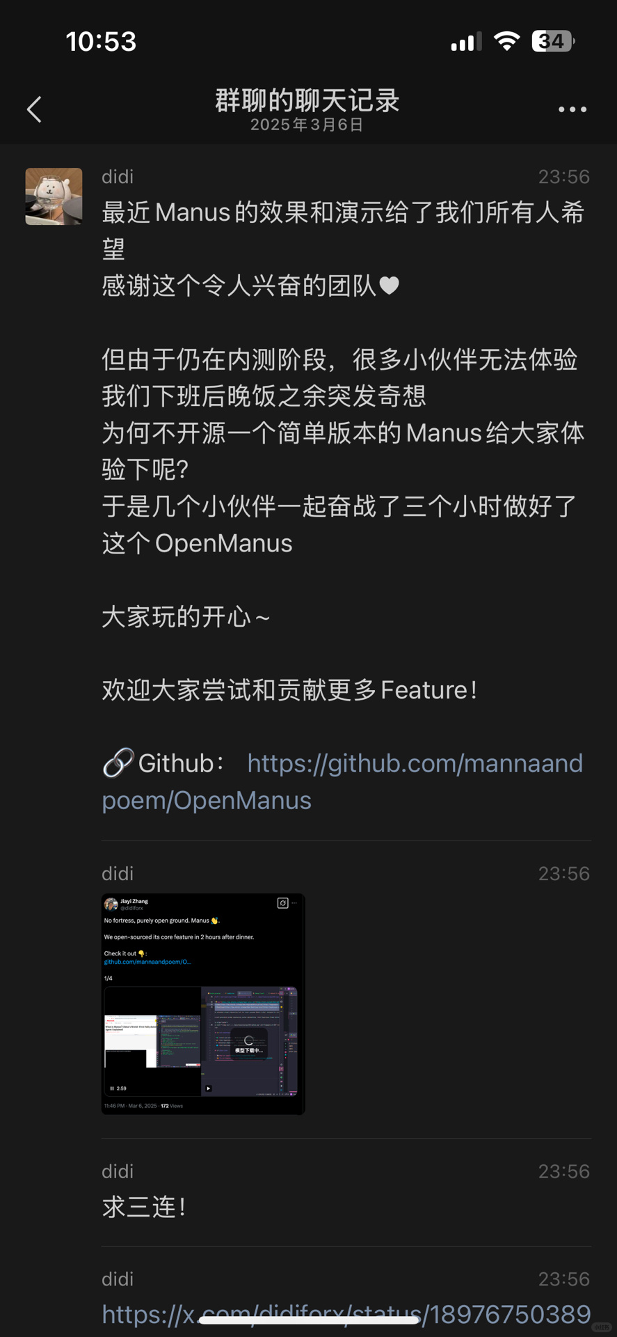 甚至在社交平台上,还有人突发奇想:可以在字节的扣子上做一个。后来,我真的看到有人说 ,团队用几个小时时间,在扣子上做了一个开源的Manus,并且贴上了产品截图。