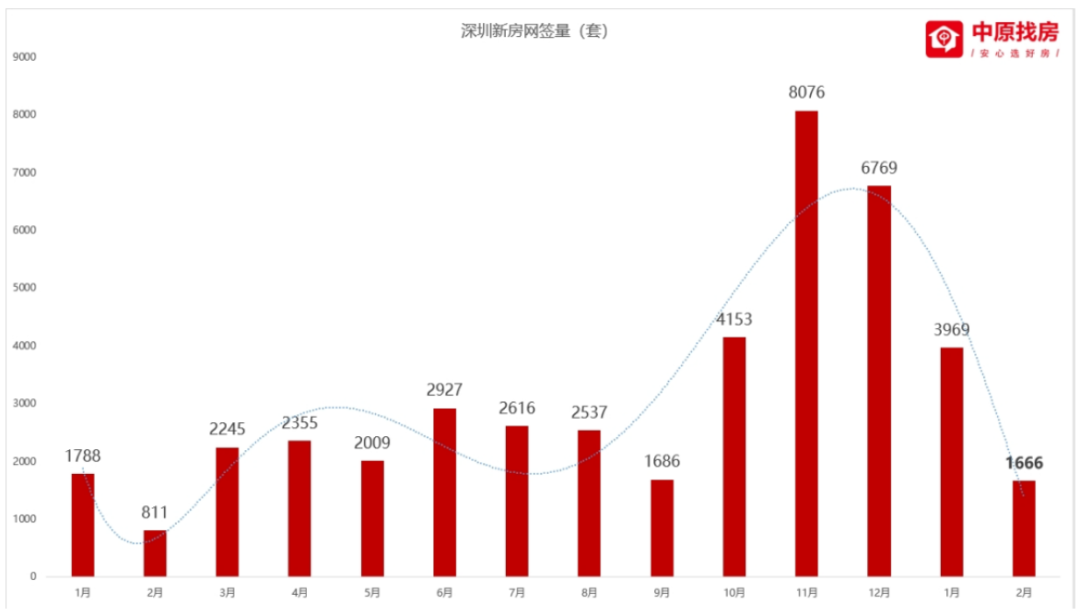 据深圳中原地产研究院数据,今年2月,深圳一手住宅共网签1666套,二手住宅共过户3677套。乐有家研究中心数据则显示,2月深圳一二手住宅网签总量6161套,同比增长119%,看房量已恢复至去年10月高峰水平。