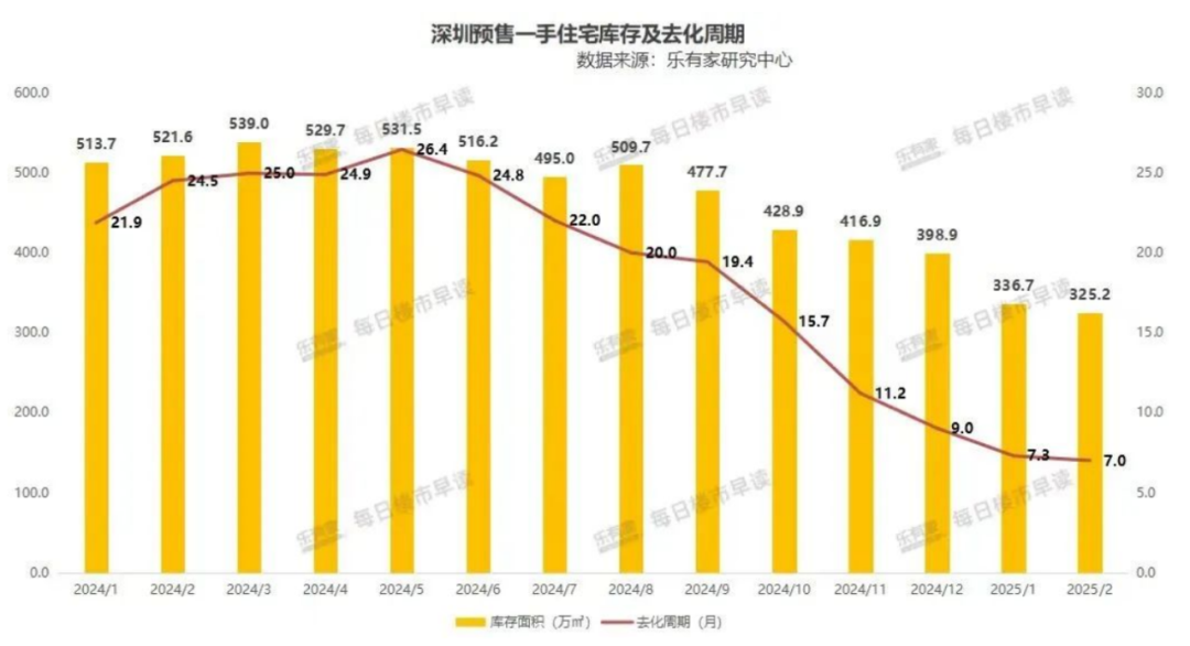 乐有家研究中心数据显示,截至2025年2月末,深圳新房去化周期仅7个月,而去年5月高峰时的去化周期达26.4个月。值得一提的是,这一去化周期也创下近3年来的最低值。分片区看,福田、罗湖均出现新房库存紧缺情况。