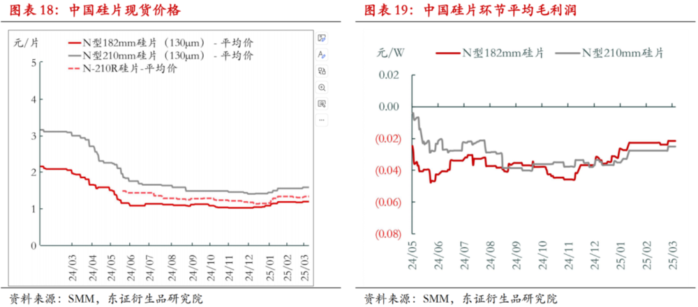 在旺盛的抢装需求带动下,硅片供应出现缺口。根据InfoLink的最新报价数据,183N 每片1.2 元、210RN每片1.4 元、210N每片1.55 元人民币,除了 210N 以外全线向上调涨,该价格已于3月13日统一执行。