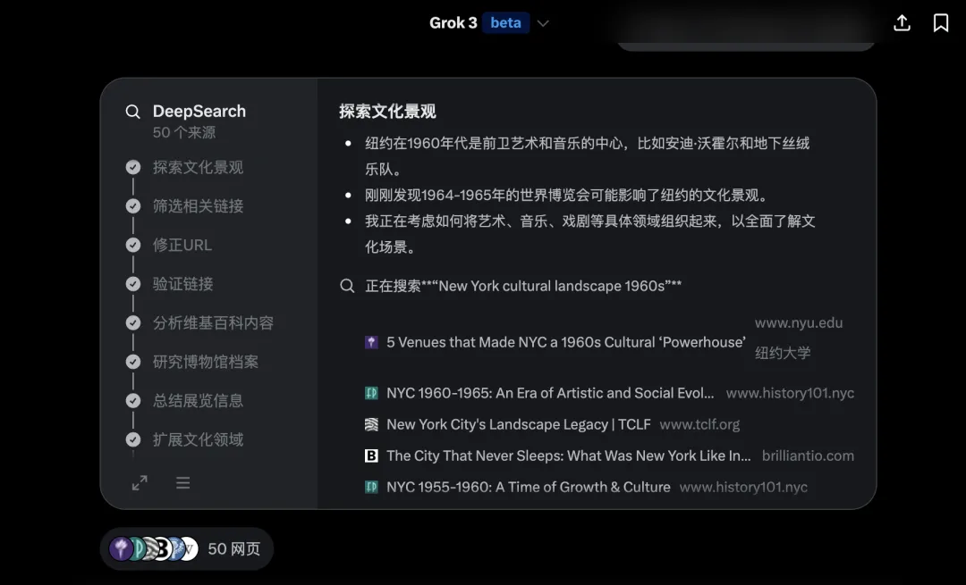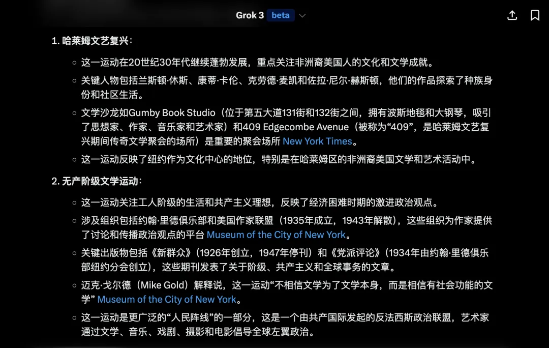 Grok 3里面是在思考过程里列出网址,报告正文有时候会触发出文内引用,有时候没有,看情况。