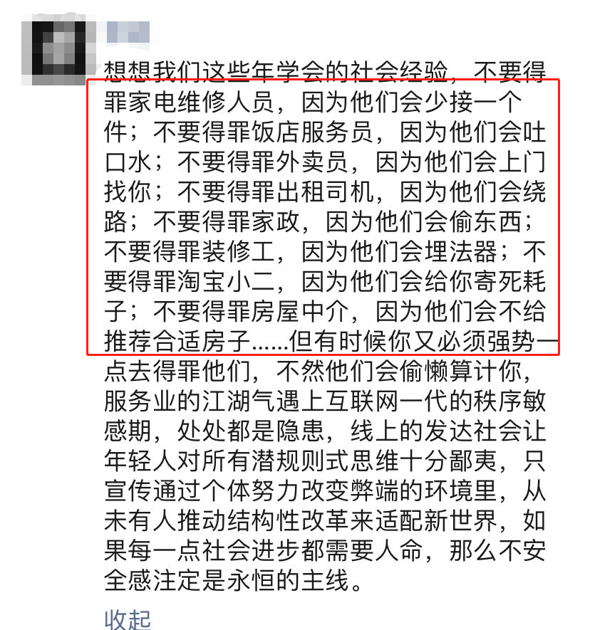 没想到的是,公众讨论的结果,转向了那个女孩“不应该太斤斤计较计”“跟体力劳动者打交道就是得大方”。