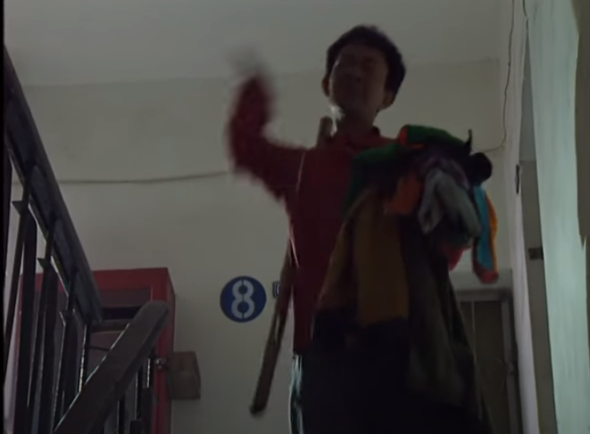 随后,梅老坎抱着衣服和修理费离开,走到楼道处,沉默地扇了自己一巴掌。