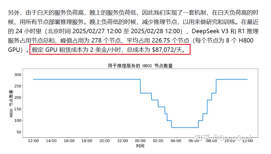 在文章中,它说,如果取用它们调配后的计算机承载峰值来计算,那么GPU的租赁成本为87072美金/每天。