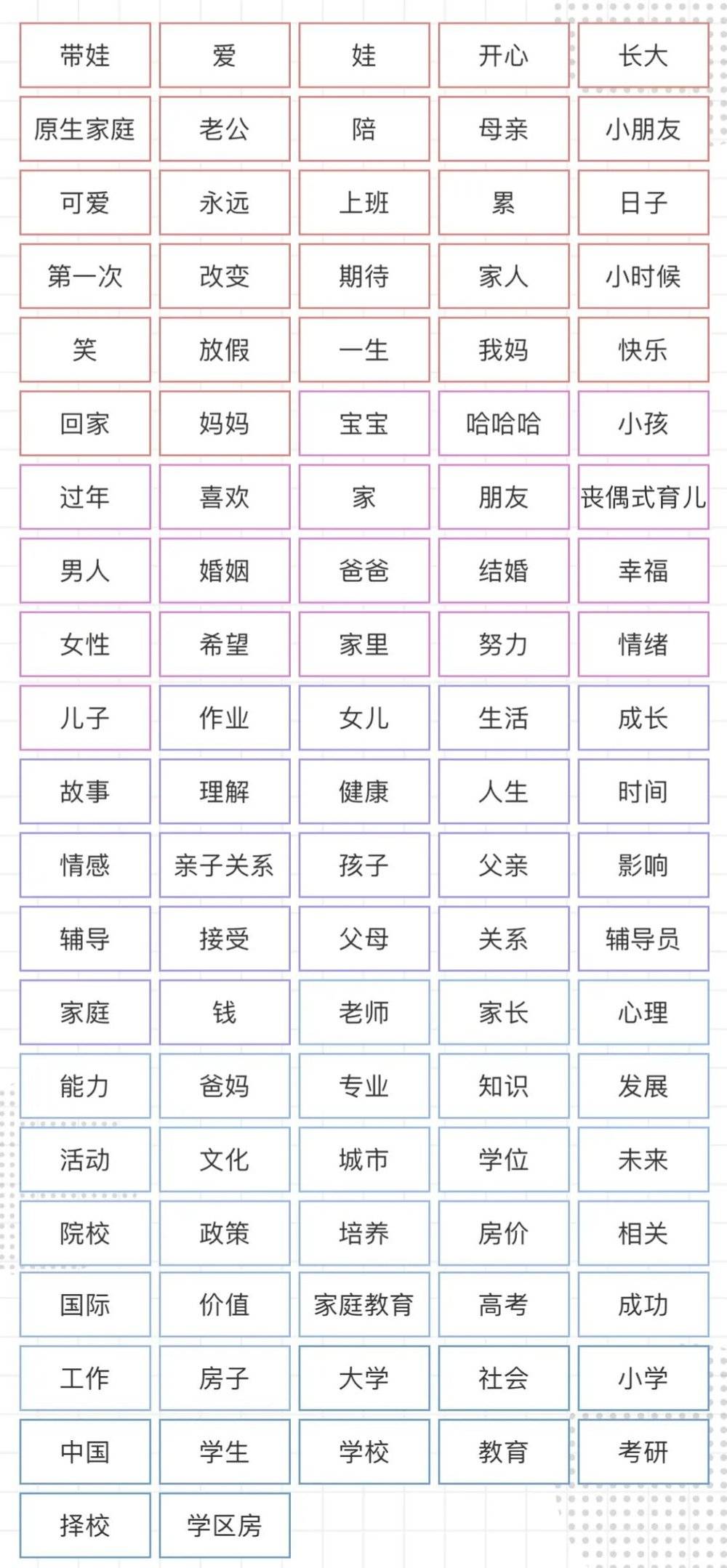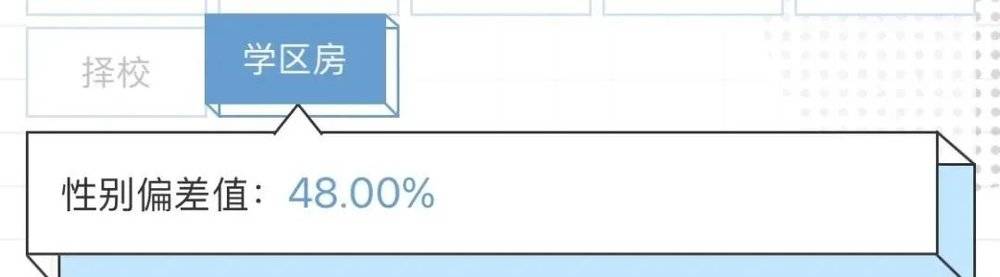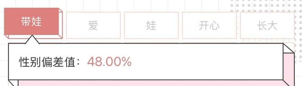 而男性在育儿话题中提到的高频词条包括:“学区房”“择校”“教育”,这三个关键词的性别偏差值均达到了44%以上,可以看出,男性在育儿问题上会更多思考孩子的教育,以及外部环境的改善,也更容易产生经济相关的压力。