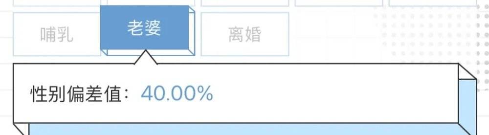 女性在怀孕中会经历种种身体的变化,例如外形变化、激素变化等等,在讨论怀孕时,女性提到“吸奶”“泵奶”“坐月子”“喂奶”等词的频率远远高于男性,性别偏差值均在27%以上,怀孕哺乳的过程和身体细节,是女性关注的焦点。