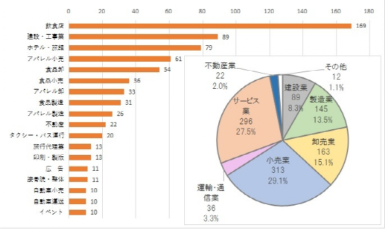 疫情之下,与旅游业相关的行业也无法幸免。包括饮食业、酒店业在内的行业,在去年破产的企业中,占比最多: