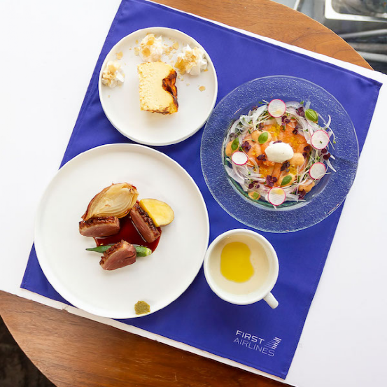 观光体验过后就到了整个旅程的重头戏——由专业级的空姐与空少,提供一流的餐食服务。
