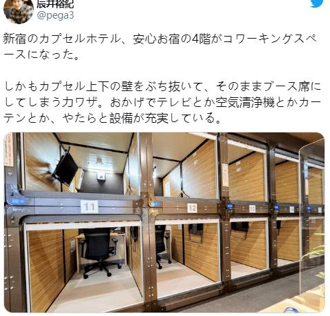 譬如,“安心お宿”胶囊旅馆,近日推出面向小企业的独立办公室,将上下两层打通,成为私人办公空间。一整天只需3000日元,同时享用漫画以及饮料。