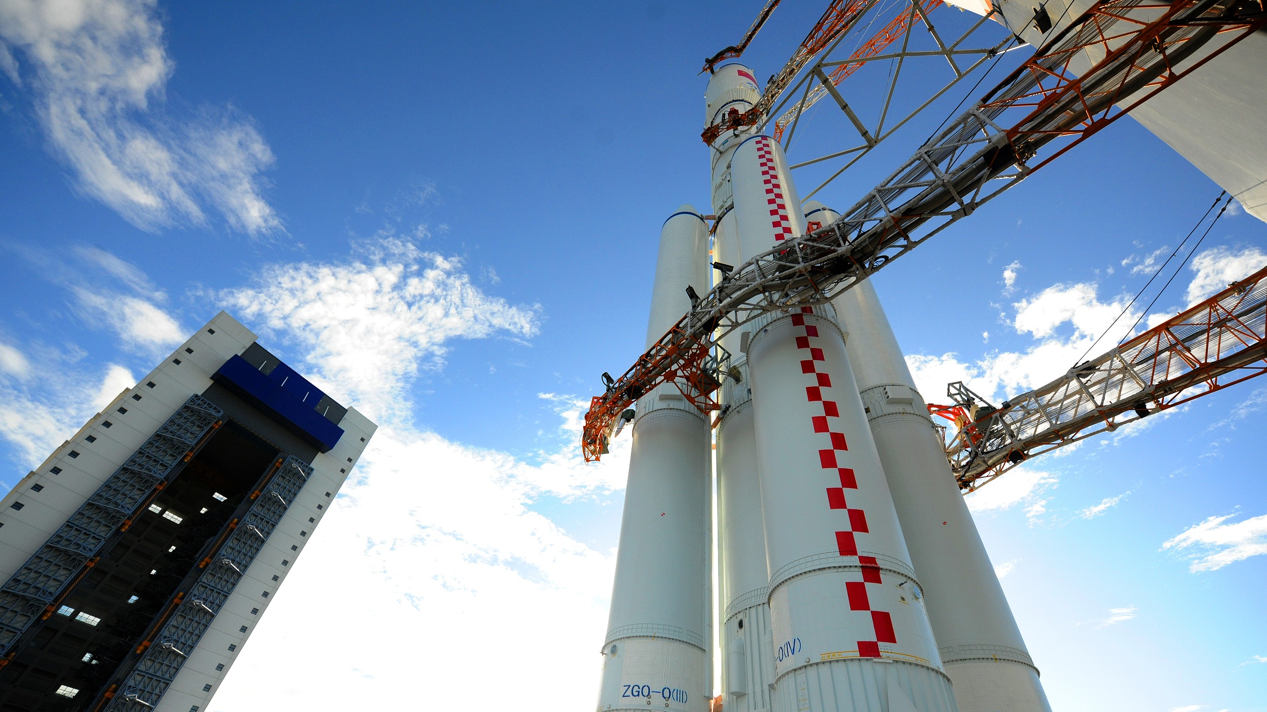长征七号A转运往发射架的情景。
