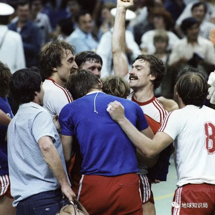 在美国带领下,有60多个国家抵制了莫斯科奥运会,苏联和东德运动员赢得了一半多的金牌(苏联男子手球队赢过南斯拉夫,图:Wiki)