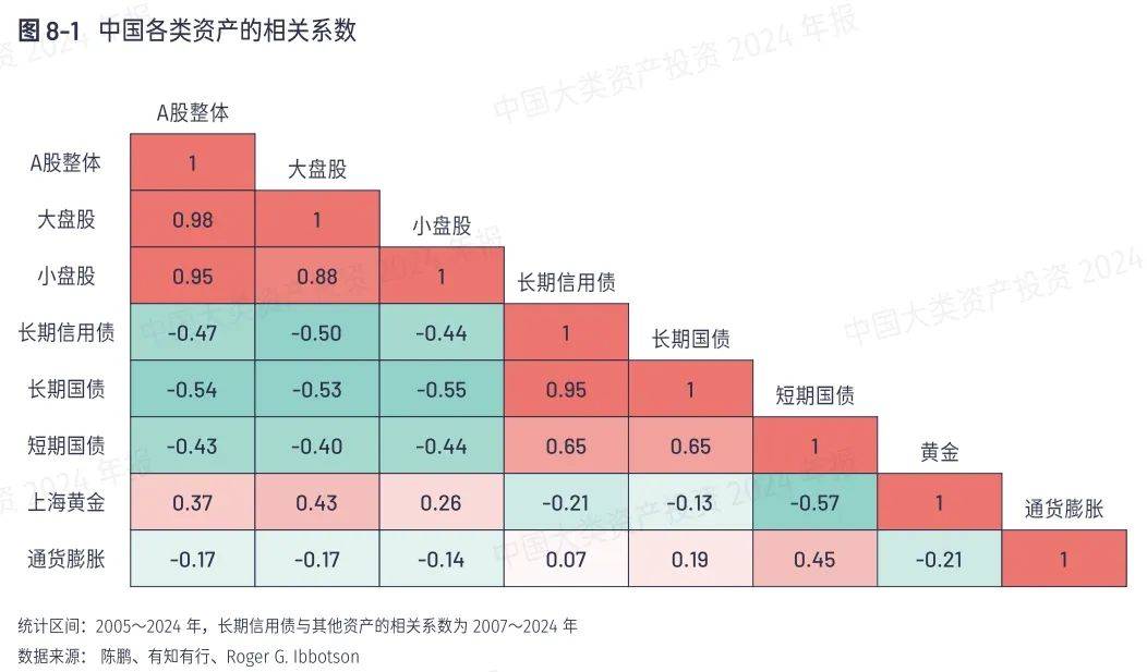 第一步大类资产配置,其关键在于选择相关性低的资产进行配置。资产的相关性是不同资产在价格或收益方面的相互关联程度,常用相关系数衡量。