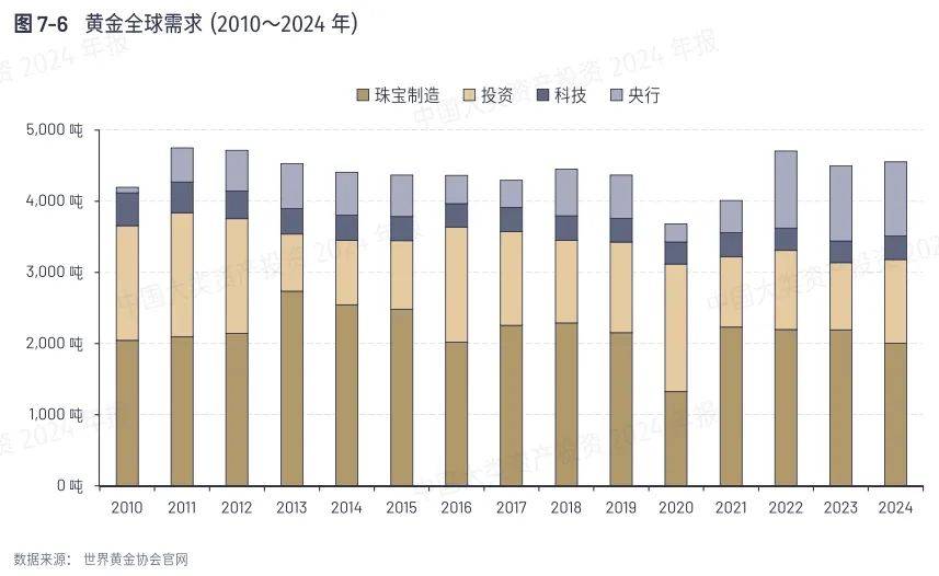 而黄金的需求来源主要有三个,一是首饰制作,二是工业用途,三是投资。其中对二级市场价格影响最大的是投资需求。而与其他资产显著不同的是,黄金的主要投资者是各国央行。