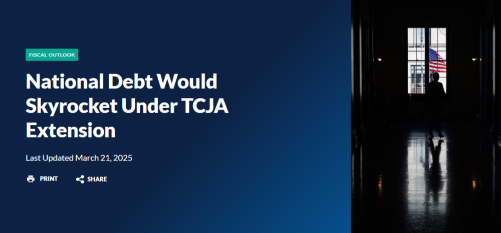 国会预算办公室(下称CBO)3月21日发布的最新分析显示,如果TCJA成为永久性条款,赤字将翻倍,债务将飙升。如果利率也高于预期,美国将遭受更严重的财政损失。