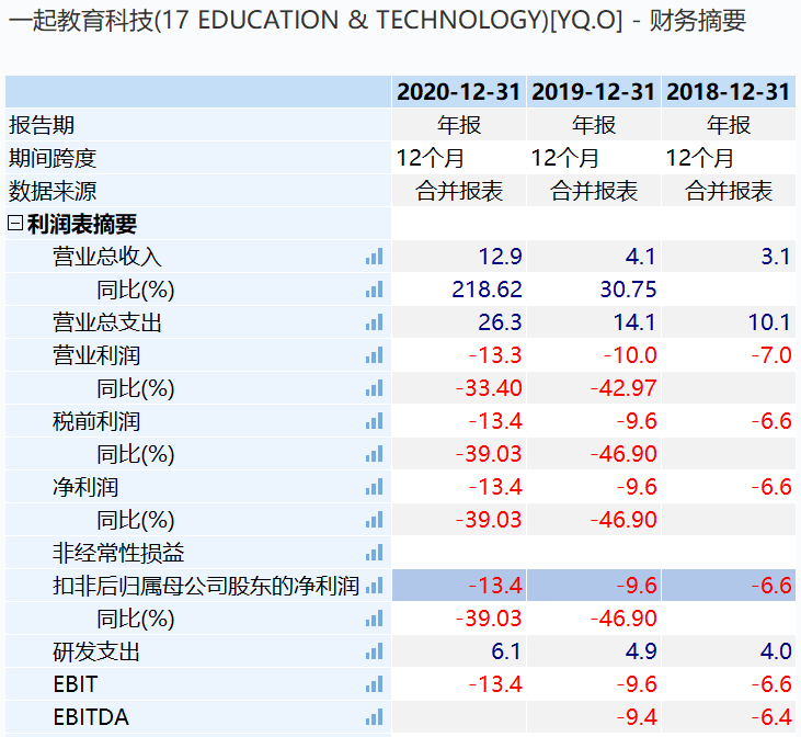 图1:一起教育财务摘要,来源:wind金融终端