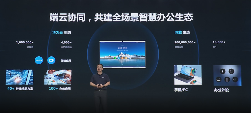 华为作为全球的IT巨头,已经形成了一个全栈、全链路的能力体系。对应到协作办公场景中,就包括了云计算、鸿蒙系统、手机笔记本等其他硬件、生态合作应用等多种能力。
