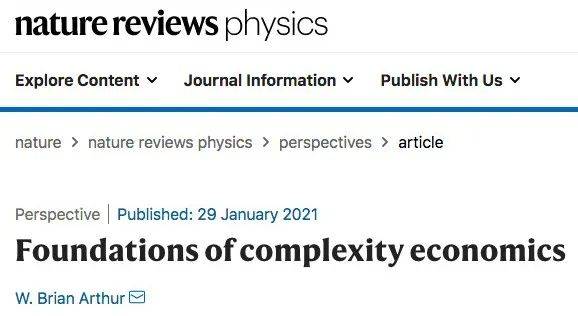 复杂经济学理论提出者、圣塔菲研究所外聘教授 W. Brian Arthur,2021年1月在Nature Reviews Physics发表长文,讨论了复杂经济学的基本逻辑(尤其是与新古典经济学的差异),梳理其主要的方法、主题与跨学科性,及其发展前景。